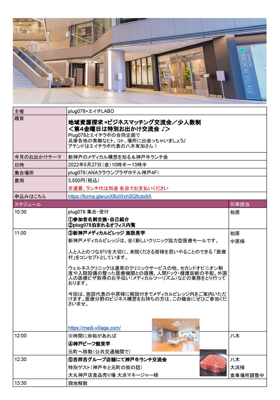 5月27日 金曜お出かけ交流会「新神戸のメディカル構想を知る&神戸牛ランチ会」
