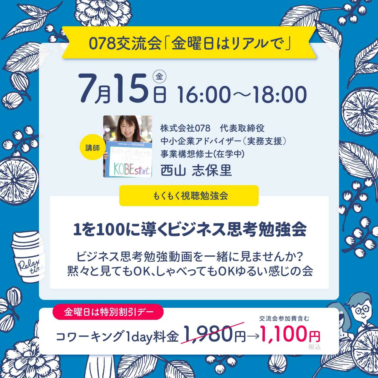 7月15日金曜交流会16:00~18:00「1を100に導くビジネス思考勉強会」