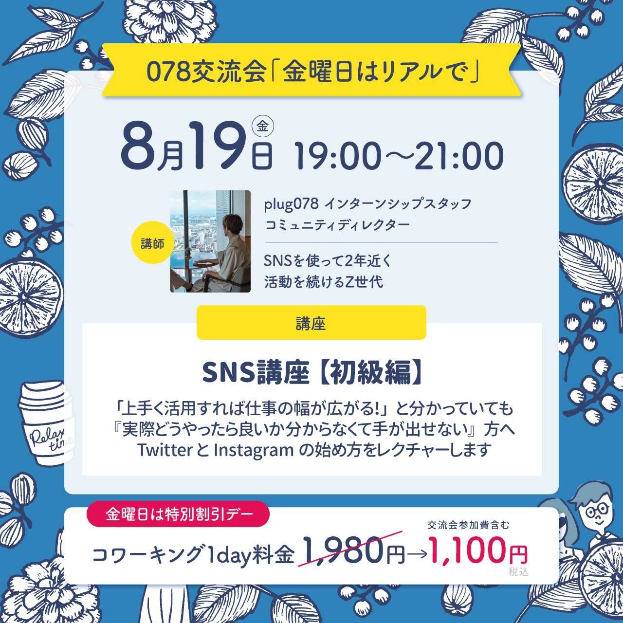 8月19日金曜交流会19:00~21:00「SNS講座【初級編】」