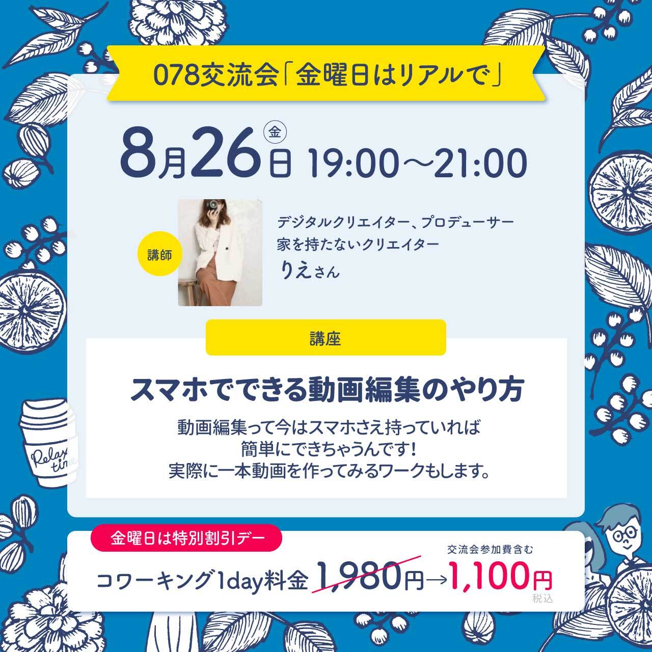 8月26日金曜交流会19:00~21:00「スマホでできる動画編集のやり方」