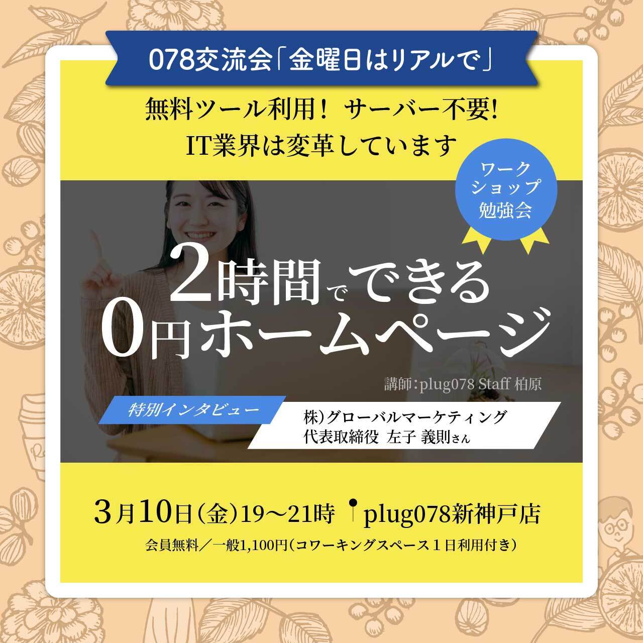 3月10日金曜交流会19:00~21:00「2時間でできる0円ホームページ」
