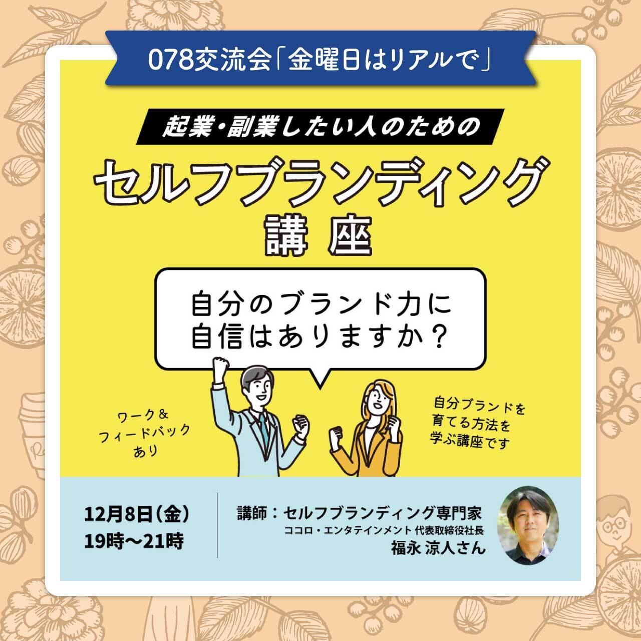 12月8日金曜交流会19:00~21:00「起業・副業したい人のための「セルフブランディング講座」」